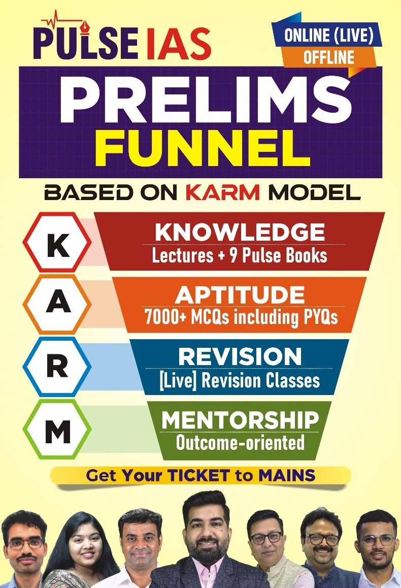 The Prelims Funnel is a structured, milestone-based programme powered by the KARM Model - Knowledge, Aptitude, Revision, and Mentorship.