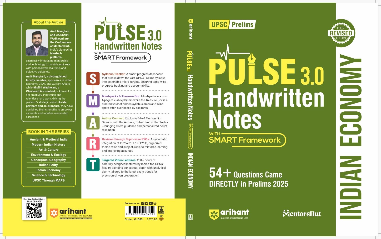 You will receive 9 Books of Pulse Handwritten Notes (3rd Edition) in Hard Copy. Trusted by 1 Lakh+ Aspirants with the track record of 54+ Question in Prelims 2025, it is a MUST Resource for Aspirant.